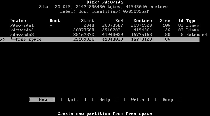 Afin de partitionner un HDD il est possible de travailler avec deux utilitaires : Fdisk et Cfdisk. Nous allons utiliser cfdisk et créer 3 partitions :