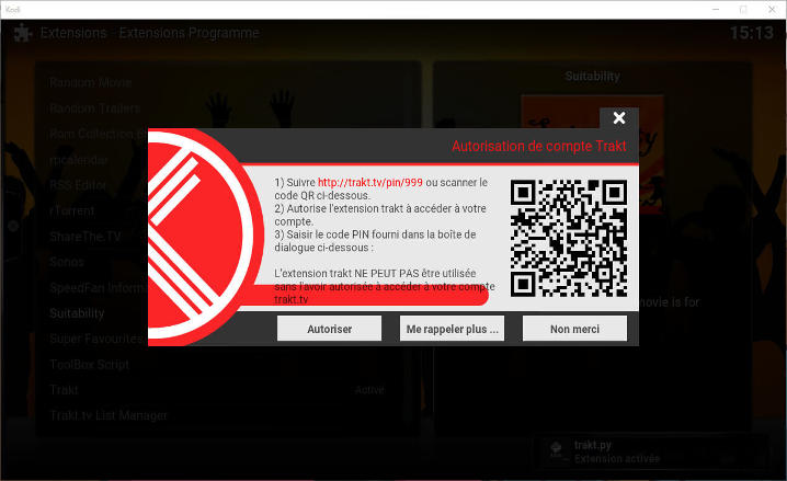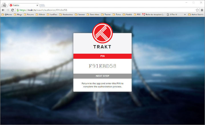 Une fois que l’extension et ses dépendances sont installées vous devez l’autoriser à accéder à votre compte, accédez à l’url indiquée, et recopier le code dans Kodi